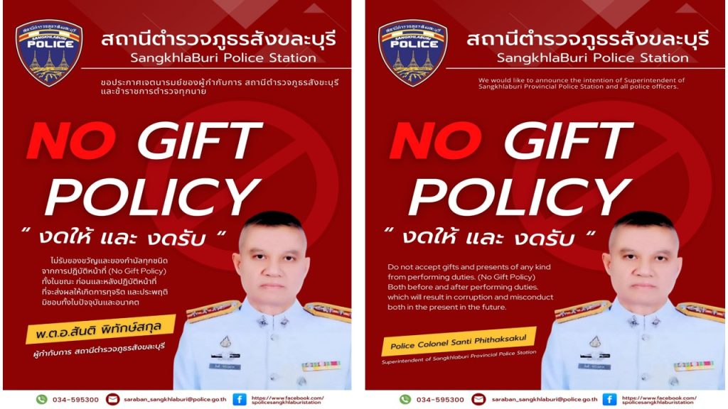 - ประกาศสำนักงานยุทธศาสตร์ตำรวจเรื่องเจตนารมณ์ที่จะไม่รับของขวัญหรือของกำนัลทุกชนิดจากการปฏิบัติหน้าที่