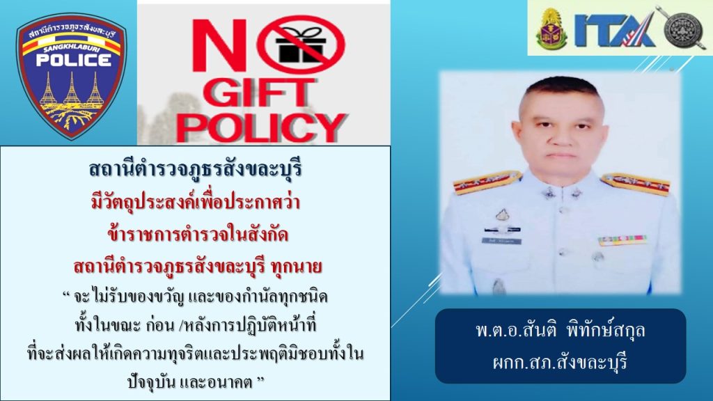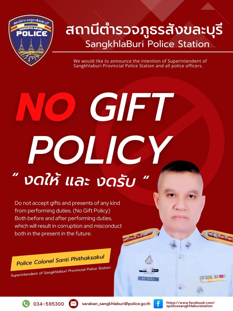สถานีตำรวจภูธรสังขละบุรี ประกาศนโยบายต่อต้านการทุจริตประพฤติมิชอบ
