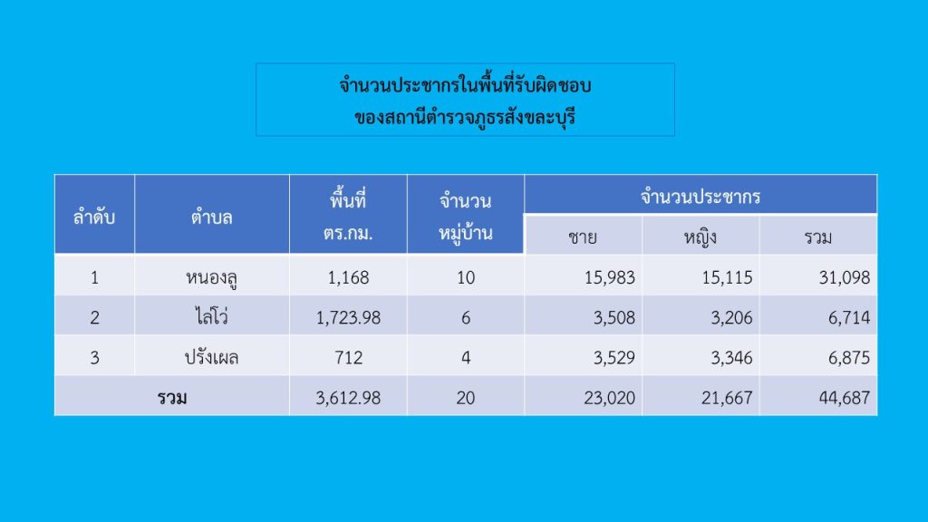 3. สายตรวจจัดวังก์ รับผิดชอบ ในเขตตำบลหนองลู 1 หมู่บ้าน